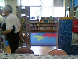 ![]() 図書室の一角。 学生ボランティアが生徒たちの勉強をみてあげている。 |